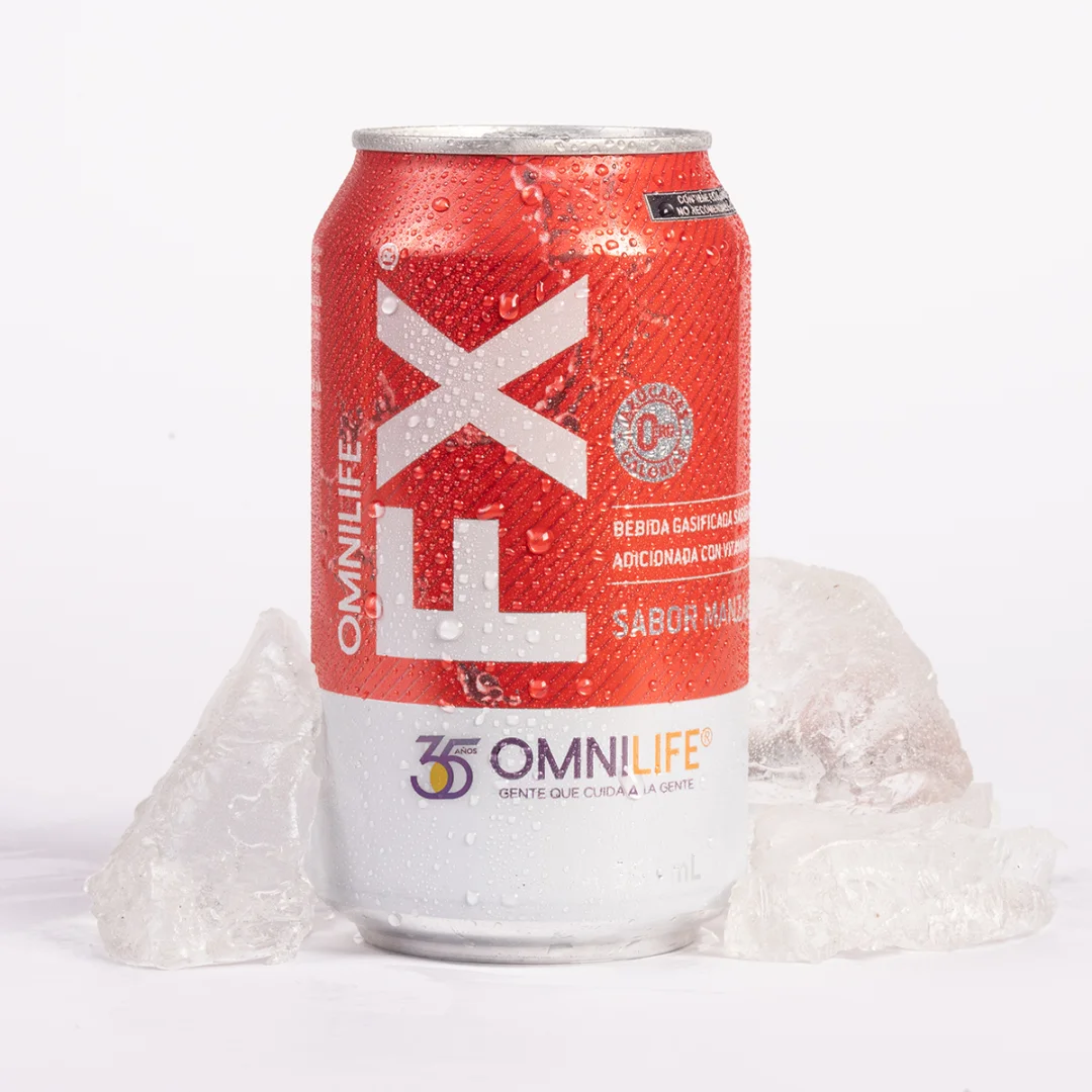 Refresca tus días con OMNILIFE FX, acompaña tus alimentos con FX manzana sin calorías y sin azúcares añadidos.
